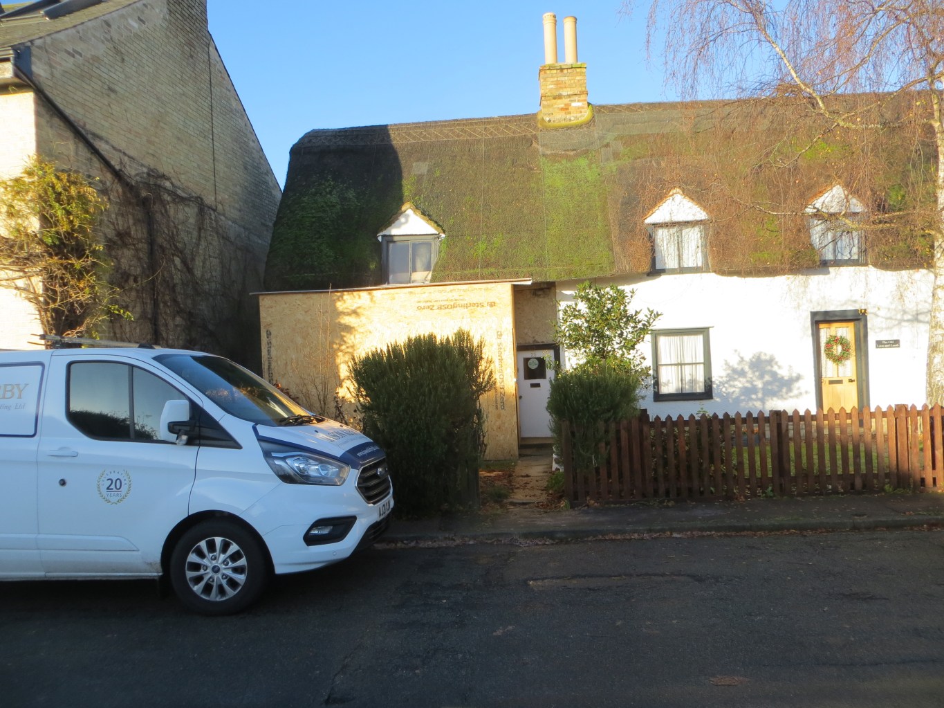 It took the builder about 3 weeks to complete the structural repairs / rebuild after removing, and putting to one side for re-use, the wattle and daub infills. A new sole plate 6’x8′ was placed and the decayed studs (5 out of 7) replaced with new – all air dried oak. The steel ties added to hold together the back and front wall plates to prevent any further roof spread sit neatly between the 1st floor joists. The engineer who specified the repair (fm CG Robertson) has visited and commended the builders work.
