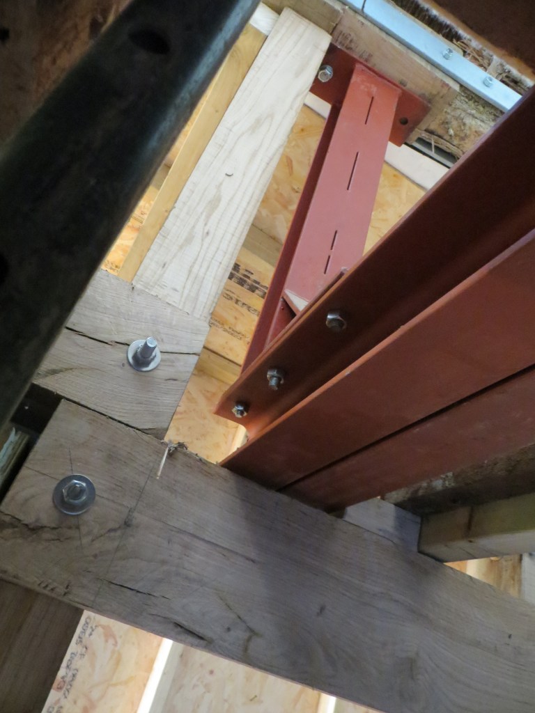 Close up of one of the two steel tie beams that hold front and back wall plate together to prevent roofspread